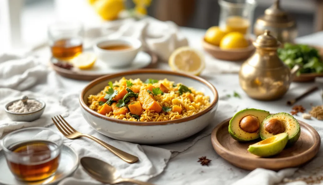 Morning: Start with a cup of warm water, perhaps with a thin slice of fresh ginger. This gently wakes agni, think of it like lighting a pilot flame before asking it to cook a full meal. Follow with a warm, grounding breakfast. This simple dinacharya (daily routine) habit sets the tone for your entire day’s energy.