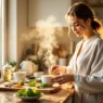 Foods that are warm, slightly oily, grounding, and easy to digest help rebuild what screen time depletes. Think cooked grains like rice or oats, stewed fruits, ghee, warm milk spiced with nutmeg or cardamom in the evening, and soups made with root vegetables. These foods carry heavy, smooth, and stable qualities that nourish ojas, that deep layer of vitality and emotional resilience.